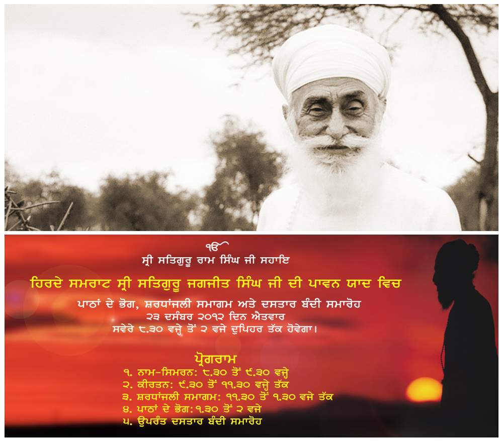 ਸ੍ਰੀ ਸਤਿਗੁਰੂ ਜਗਜੀਤ ਸਿੰਘ ਜੀ ਦੀ ਪਾਵਨ ਯਾਦ ਵਿਚ ਸਰਧਾਂਜਲੀ ਸਮਾਗਮ 23-12-2012