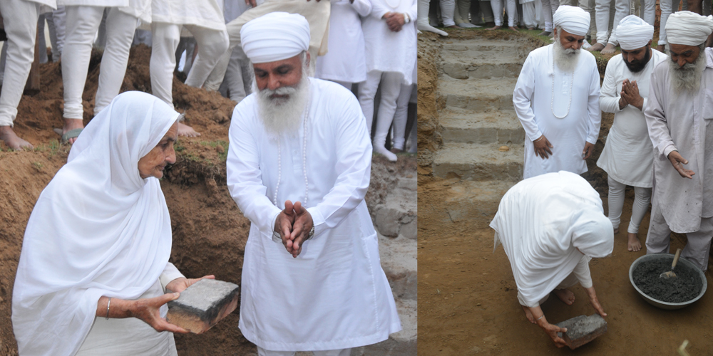 ਸ੍ਰੀ ਸਤਿਗੁਰੂ ਉਦੈ ਸਿੰਘ ਜੀ ਦੀ ਹਜ਼ੂਰੀ ਵਿਚ '( ਜਗਜੀਤ ਮੰਦਰ )' ਨੀਂਹ ਦੀਆਂ ਇੱਟਾਂ ਰੱਖਦੇ ਹੋਏ ਪੂਜਯ ਮਾਤਾ ਚੰਦ ਕੌਰ ਜੀ (13-april-2013)