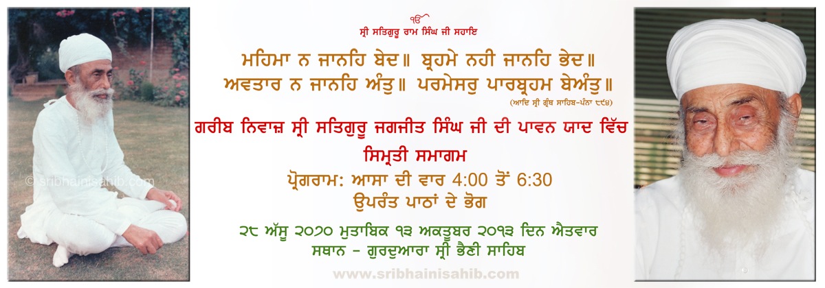 Sri Satguru Jagjit Singh Ji Simrati Smagam 13 October, 2013 at Sri Bhaini Sahib