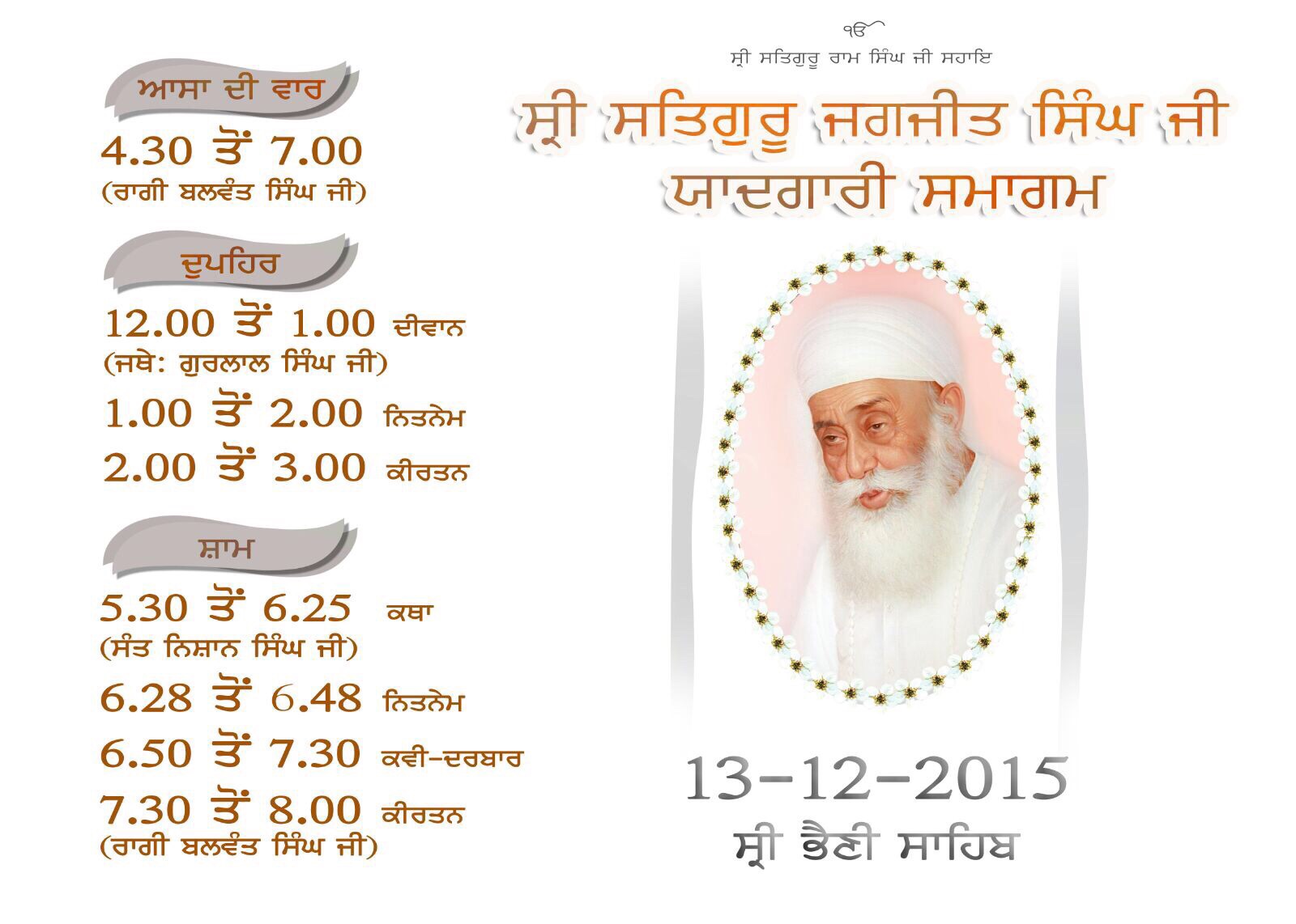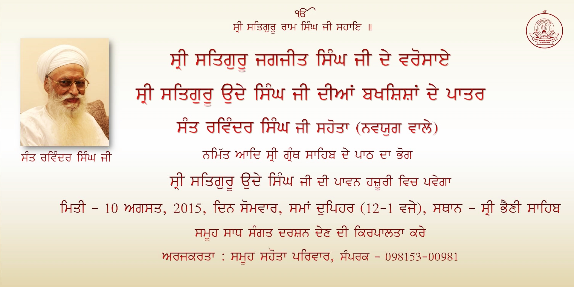 Surnaad In the loving memory of Sri Satguru Jagjit Singh Ji on August 2015 in Southhall UK