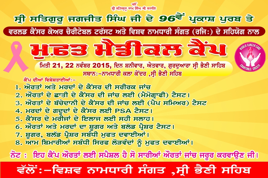 Delegates from "World cancer care charitable trust" seeking blessings from Sri Satguru Ji on 21st November 2015.