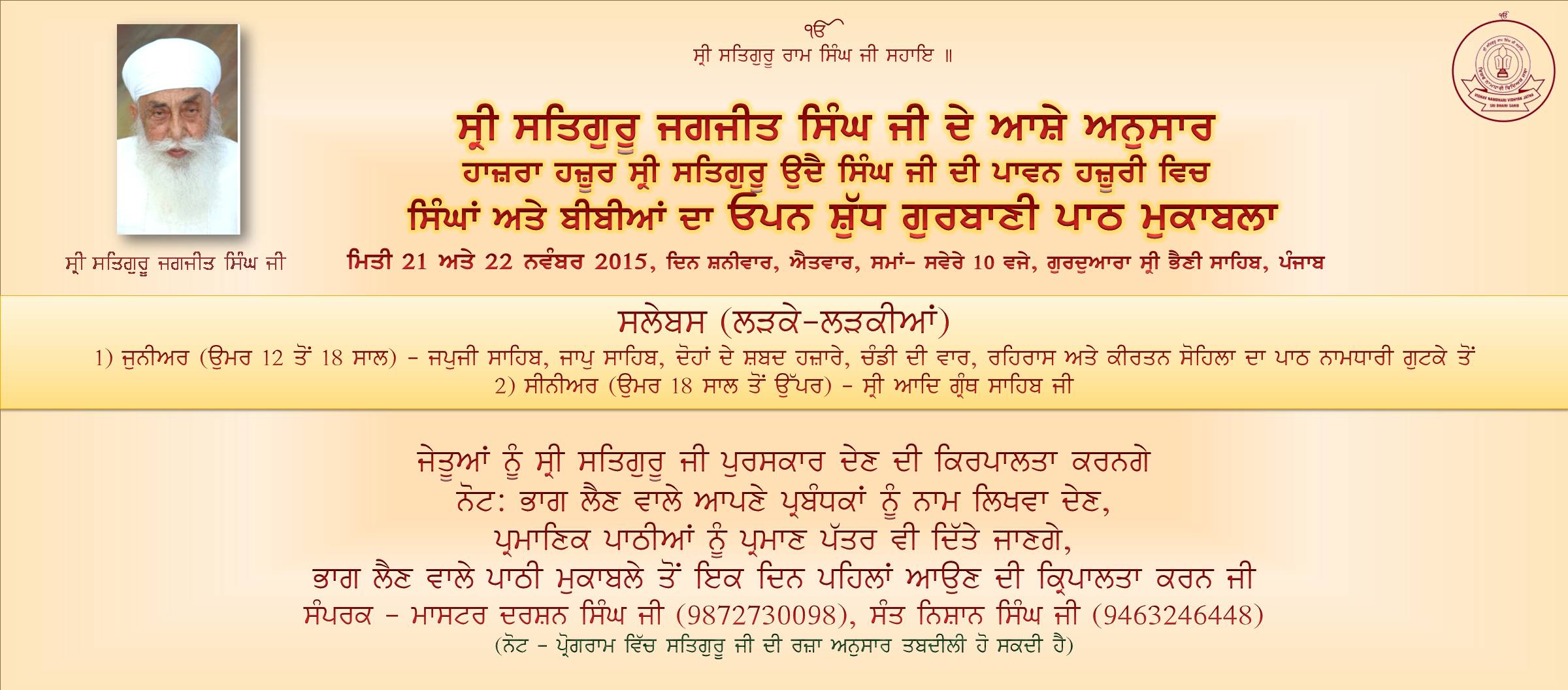 Open Gurbani Competition 21,22 November 2015.