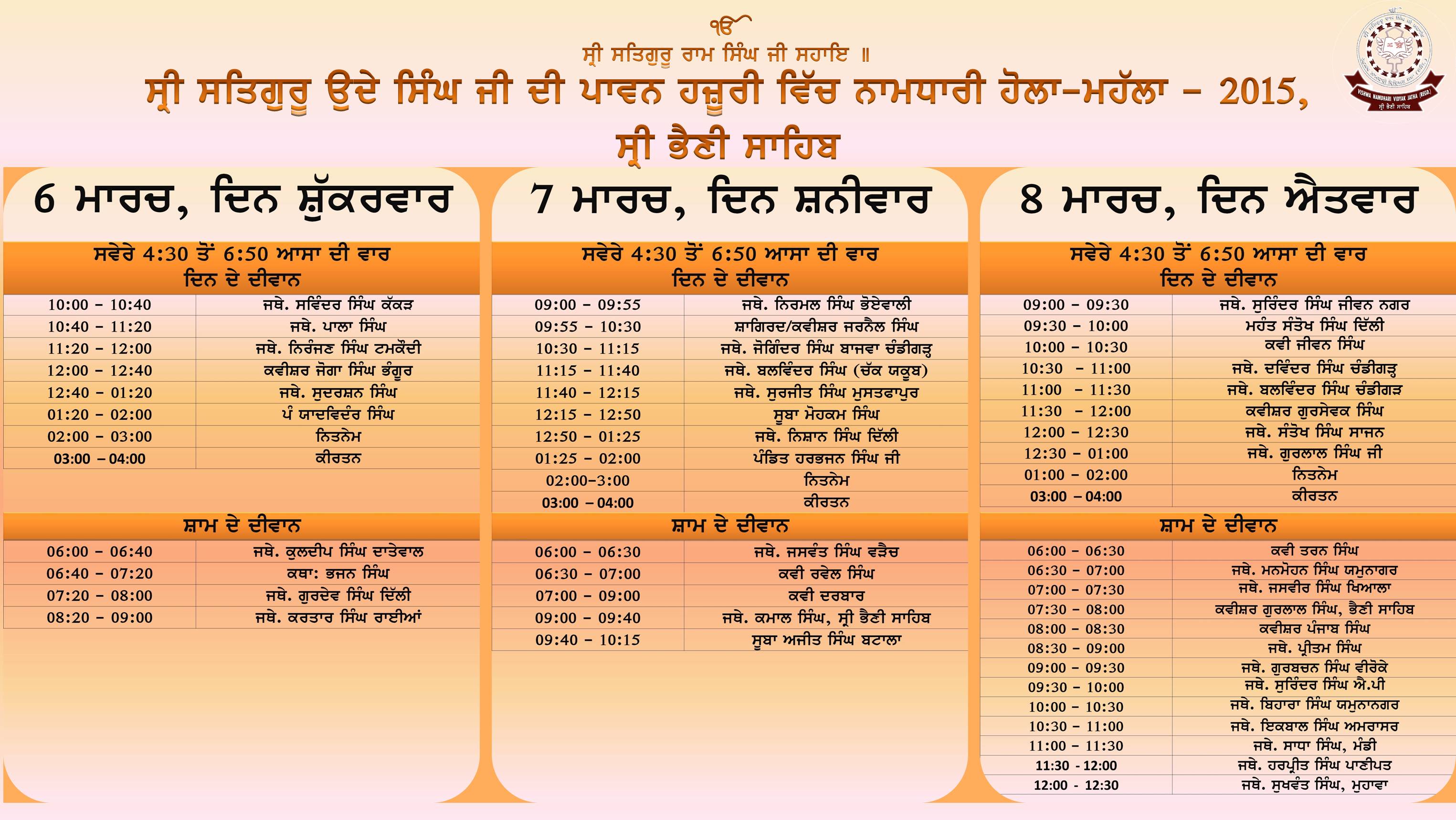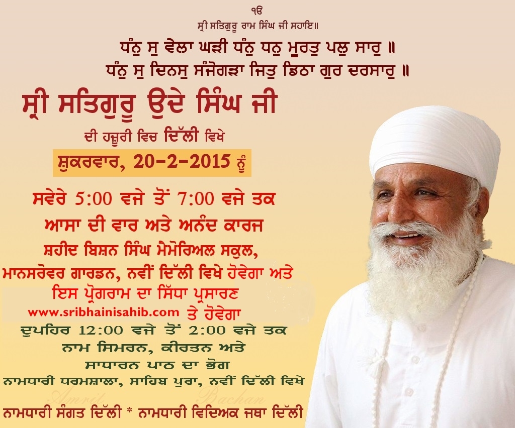Schedule of Satguru ji's delhi program on 20th February 2015