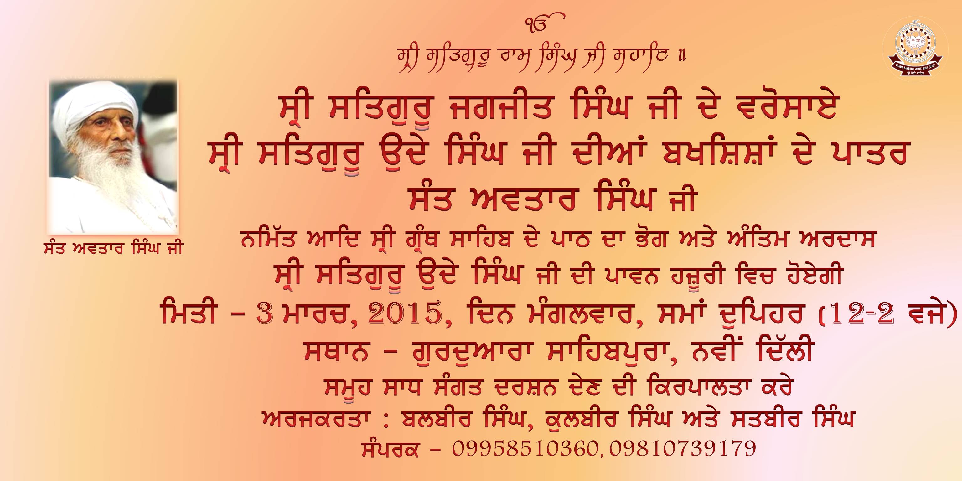 Sant Avatar Singh ji namit Bhog in Delhi on 3 March 2015