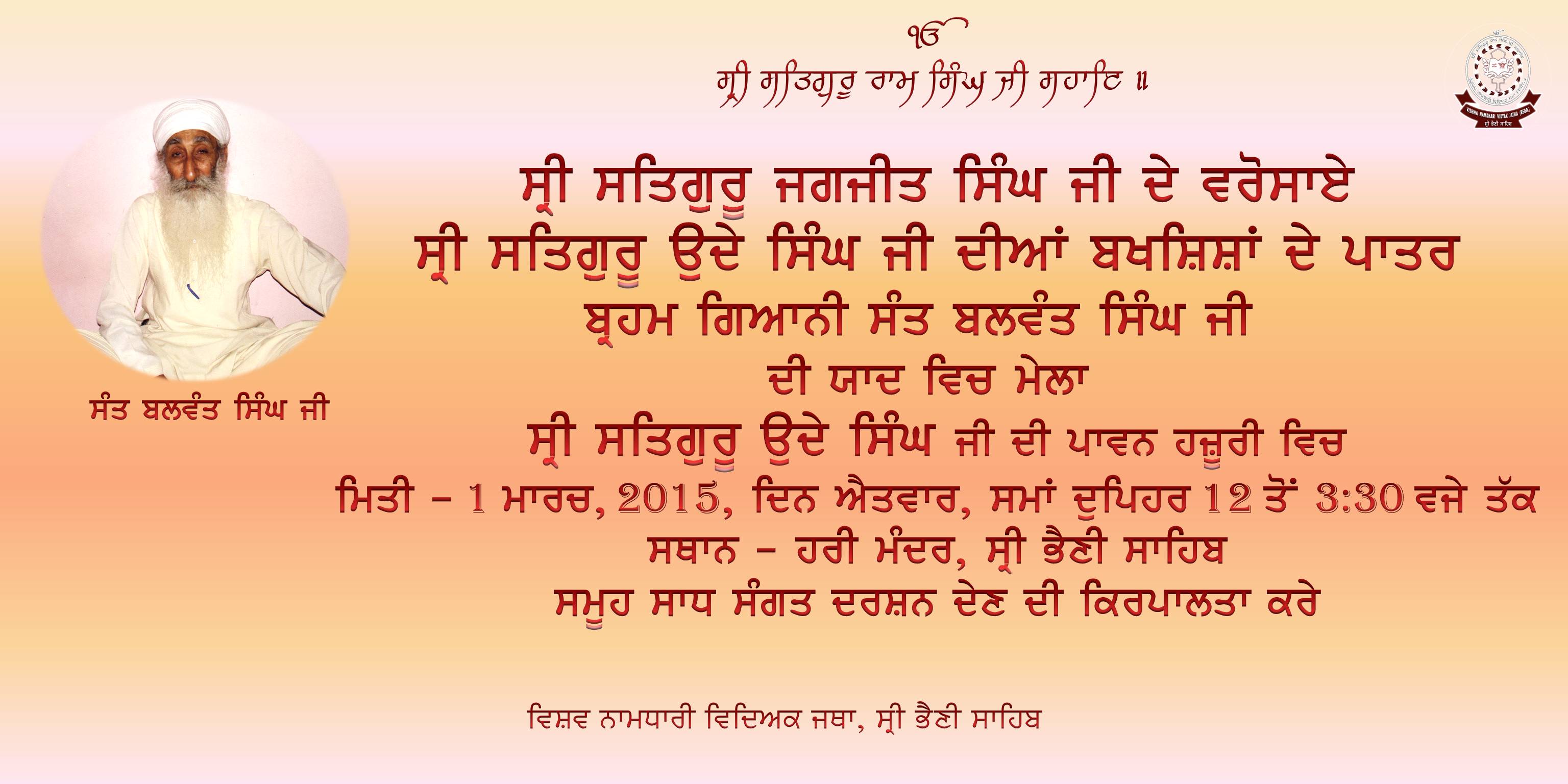 Sant Balwant Singh Ji namit Mela at Sri Bhaini Sahib on 1 March 2015