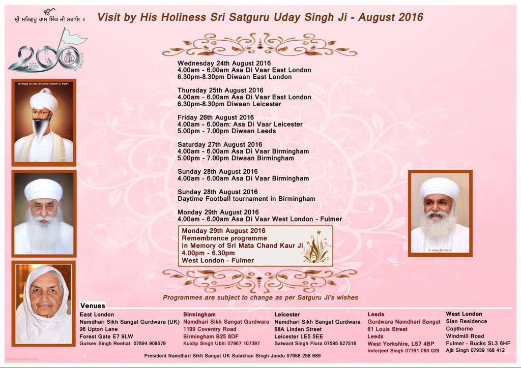 England visit by His Holiness Sri Satguru Uday Singh Ji - August 2016