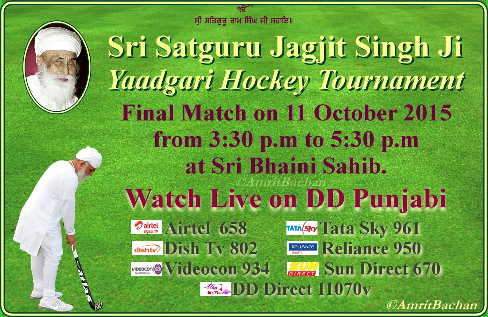 Sri Satguru Jagjit Singh ji yaadgari junior hockey tournament" on 11 October 2015